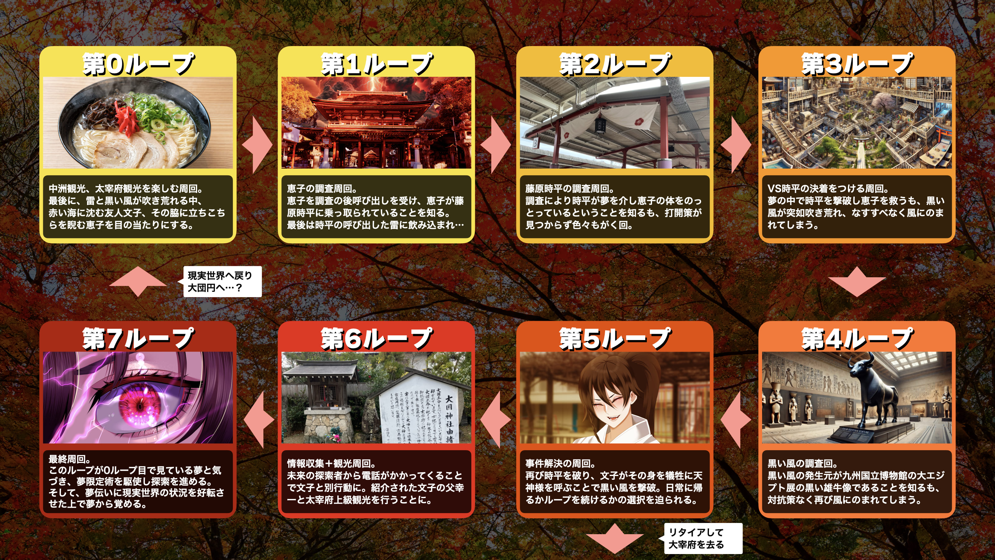 探索者達は、そのまま太宰府を去るか、文子を助けるためさらなるループに身を投じるかの選択を迫られます。